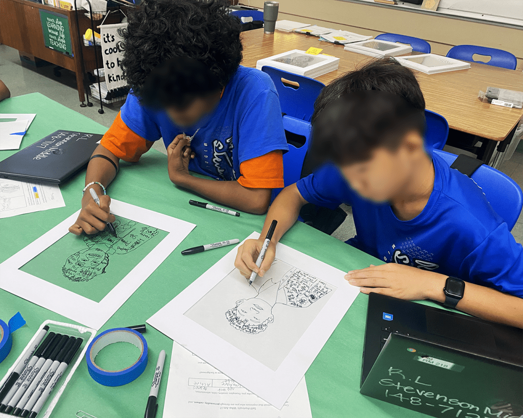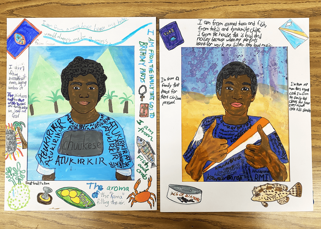 Zoe Liu, SFCA Artistic Teaching Partner: “During this Artist in the School residency at Robert Louis Stevenson Middle School, students developed foundational skills in acrylic and watercolor techniques while engaging in identity-based self-portraiture. The residency integrated visual art instruction with language development by