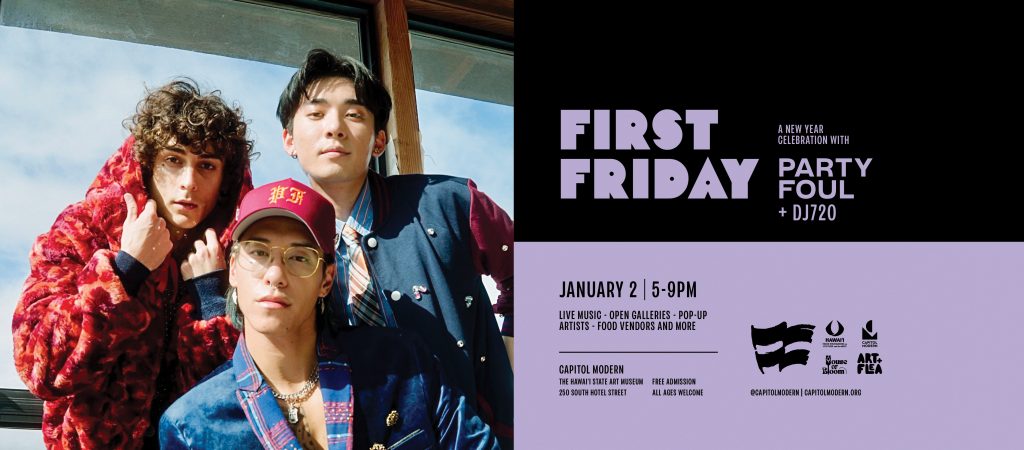 Capitol Modern: the Hawaiʻi State Art Museum is open Wednesday – Saturday, 10:00 a.m. – 4:00 p.m. Admission is free. The galleries are also open the first and third Friday of the month in the evening from 5:00 – 9:00 p.m. during the free, all-ages live music events.
