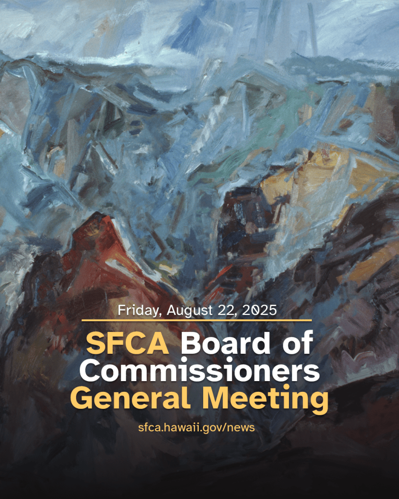 Decisions about grants, artwork purchases, and more are made by the State Foundation on Culture and the Arts (SFCA) Board of Commissioners. Meetings are currently being held in-person and virtually on Zoom, and the public is invited to attend.